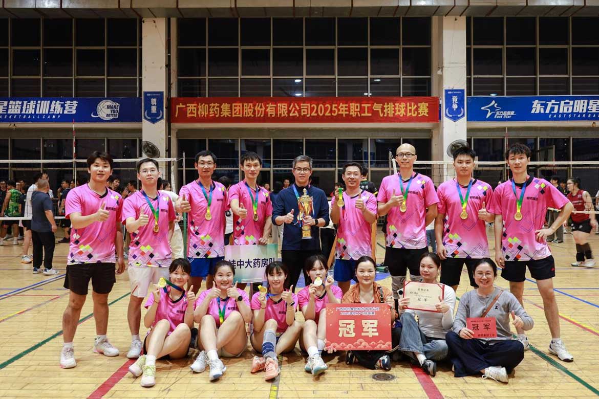 经过激烈且焦灼的比拼,桂中大药房最终获得本届职工排球赛冠军。这场比赛中,我们秉持团结友爱、不怕困难的竞技精神,颁奖仪式后,桂中大药房总经理陈晓远先生与队员们合影留念。
