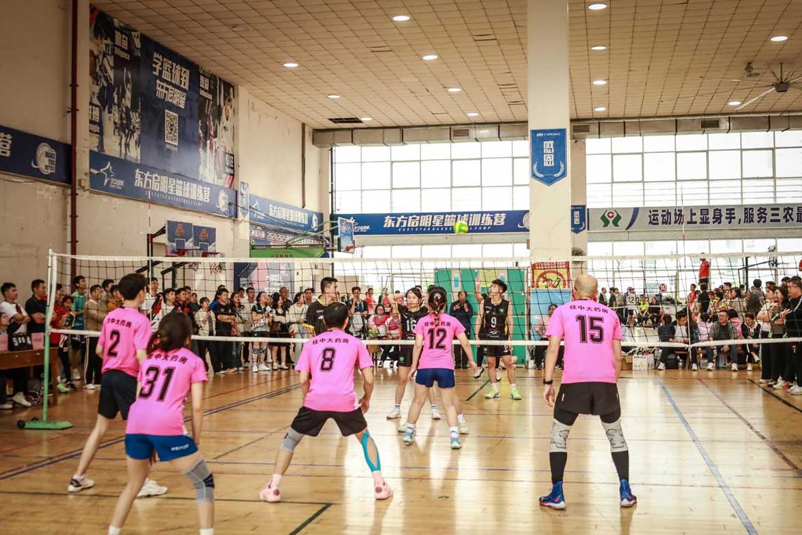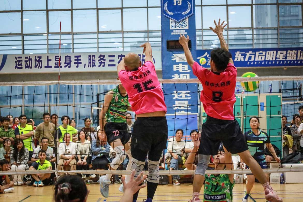 在下午的比赛中,桂中大药房排球赛参赛队员团结协作,奋勇拼搏,最终与供应链一队一同晋级至冠亚争夺赛。