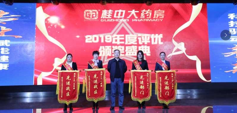 主持人登台亮相,慷慨激昂地宣布晚宴正式开始,公司董事长朱朝阳先生、总经理肖俊雄先生分别上台致辞,肯定公司已取得的各种成绩,感谢公司员工的付出,更感谢我们的优秀合作伙伴的鼎力支持。优秀供应商代表也上台致辞,肯定了桂中大药房的标准化操作和专业化服务。接着进行优秀供应商及先进员工表彰,对2019公司各条战线、各岗位的优秀员工、团队给与肯定和鼓励,希不骄不躁,来年再创佳绩。最后进入精彩的节目表演环节,每个节目都是公司员工利用空余时间加班排练的成果。员工热情洋溢的舞姿、清朗歌声无不彰显着我们积极向上的创新力与活力,展现我桂中人的精神风貌。