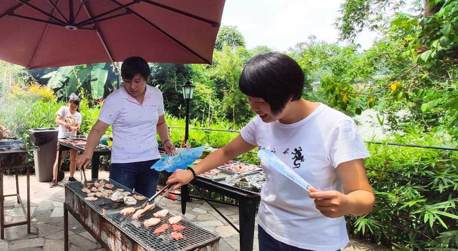 9月5日,筹备已久的总部职能部门拓展活动在悦僮生活馆顺利进行。大家伴随着悠扬的音乐、身处环境优美的小院子里开启了自助烧烤模式;天气虽炎热,但也阻挡不了大家互相调闹、嬉笑、品尝美食的节奏,场面看着十分热闹......