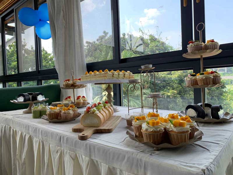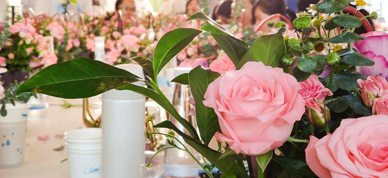 享用午餐后,大家移步到活动场地着手准备参加“茶道&花艺小课堂”,早早已布置好的场地、精致的点心、悦耳的古琴声,揭开了小课堂的序幕。