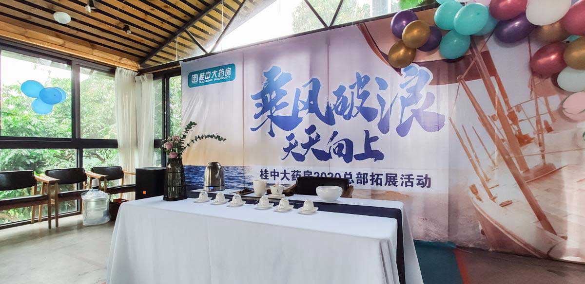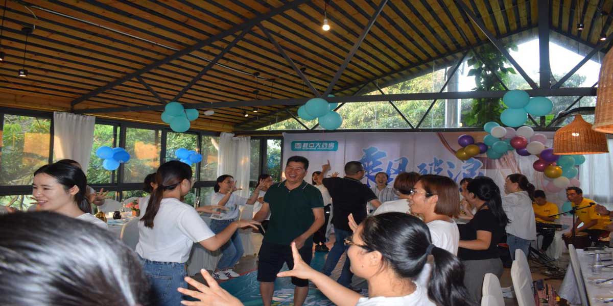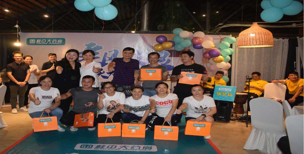 全体职能部门及公司领导齐舞《天天向上》,将气氛推向高潮,全场齐声:“桂中大药房!乘风破浪,天天向上!”