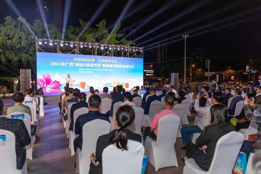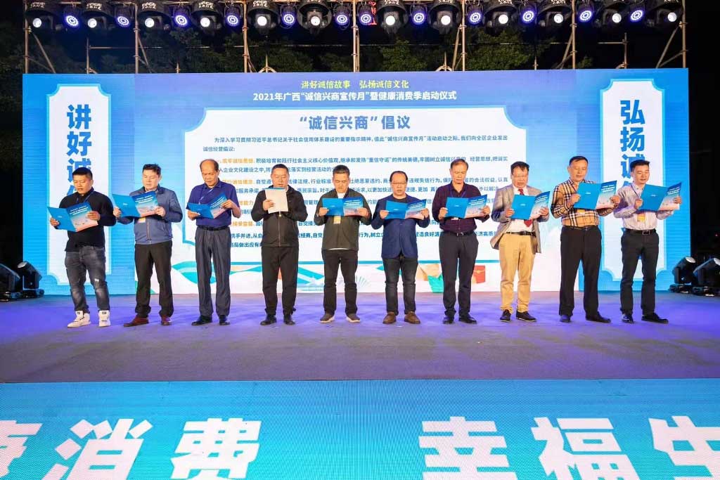 10月12日晚,由自治区商务厅联合区药监局举办的广西健康消费季于柳州城中万达广场举行了盛大的启动仪式,自治区商务厅副厅长粟坚、柳州市政府二级巡视员莫仲彪及各行业协会代表、药品流通企业代表出席启动仪式。桂中大药房常务副总经理邓瑞太代表桂中大药房参加仪式并发表诚信经营倡议。