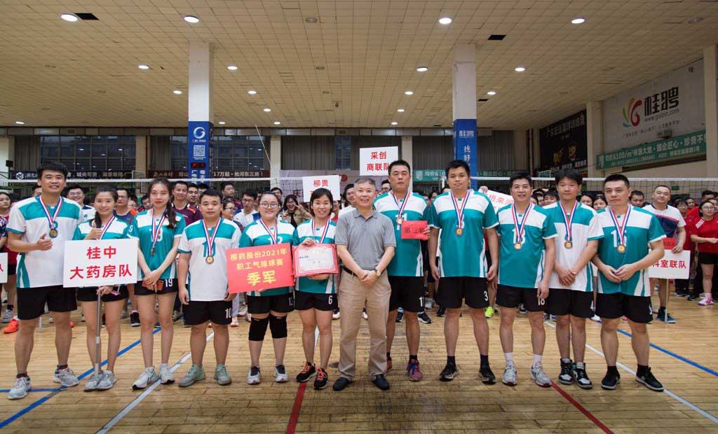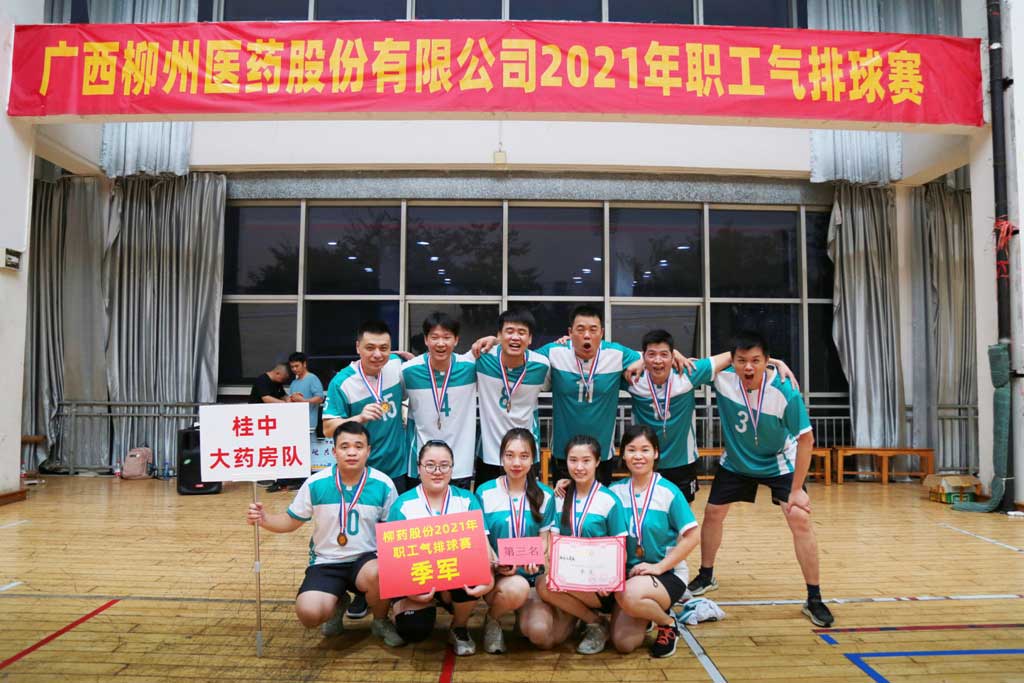 11月6日,2021年柳药股份职工气排球赛在柳州市篮球训练基地如期举行,本次比赛共有18支队伍参赛,桂中大药房由常务副总经理欧福海带队参赛。最终桂中大药房以小组全胜,小组第一的好成绩挺进淘汰赛。第一轮淘汰赛仍然保持战绩,可惜过早在1/4决赛时遭遇上届决赛对手供应链物流1队,未能进入决赛。队员们始终发扬不气馁,不放弃的体育精神,保持拼搏斗志,打好3/4名比赛,最终获得了第三名好成绩。